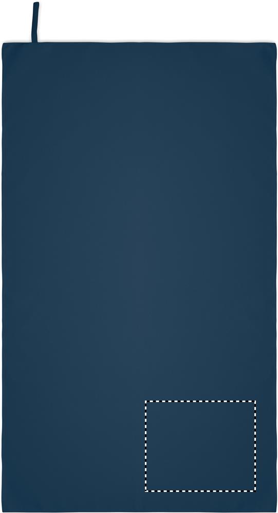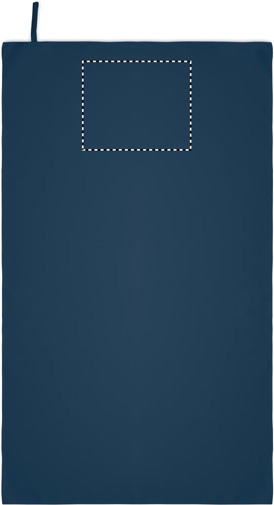 Handtuch aus Mikrofaser. 90% Polyester und 10% Polyamid mit Elastikschlaufe. Leicht und schnell trocknend. Maße: 70 x 120 cm.