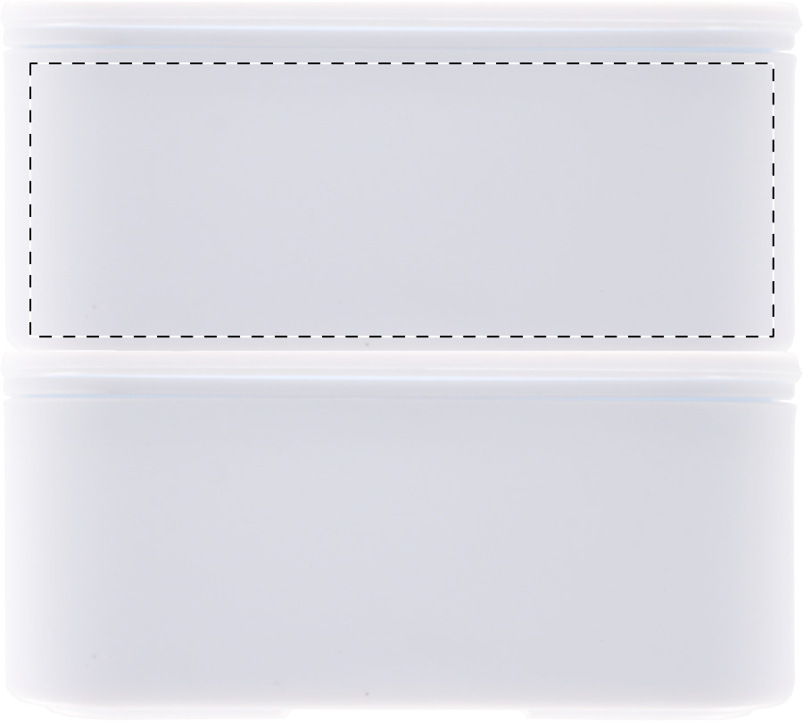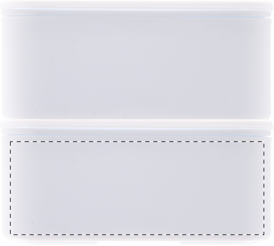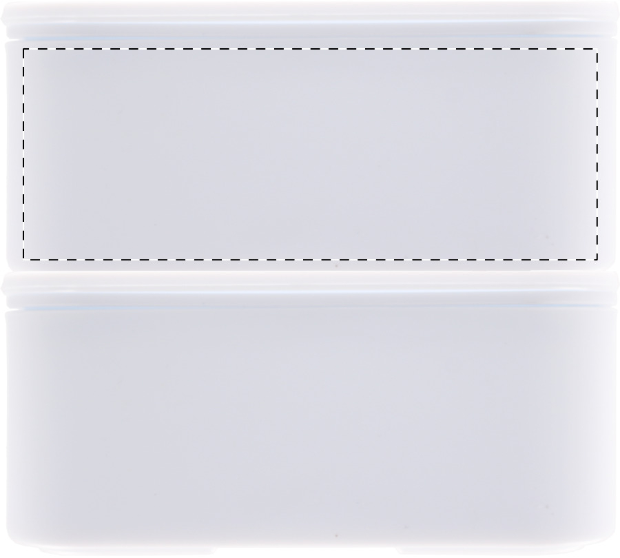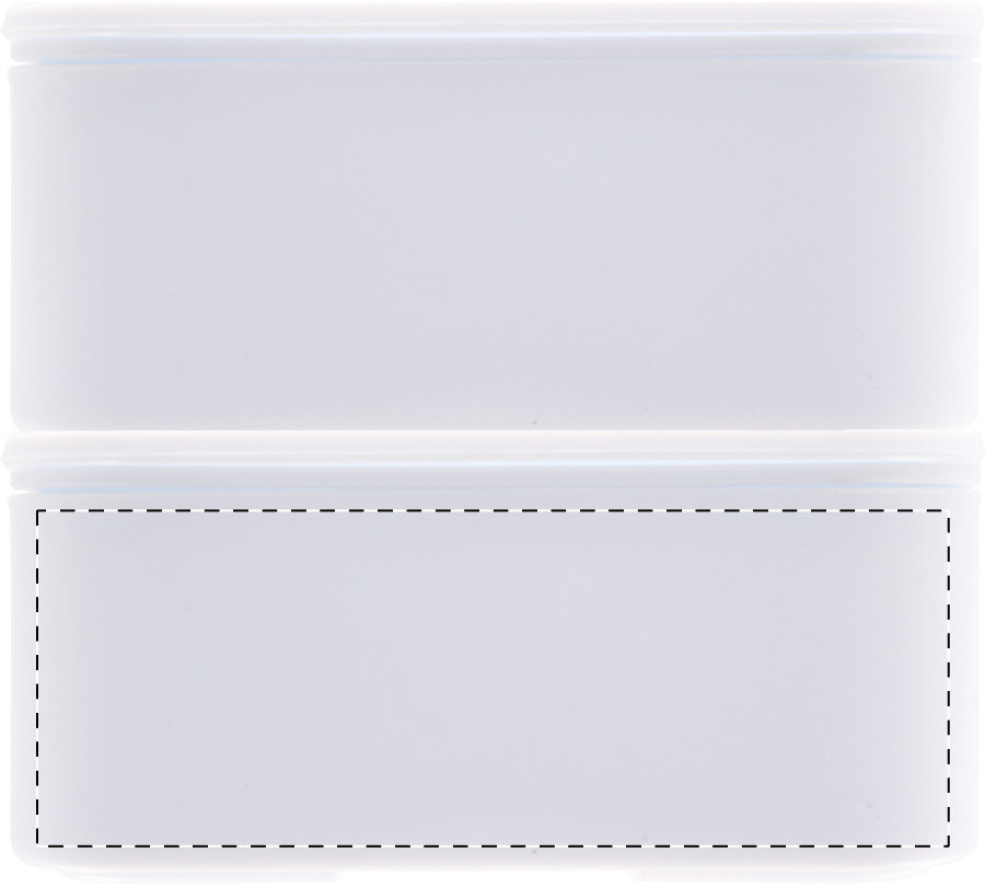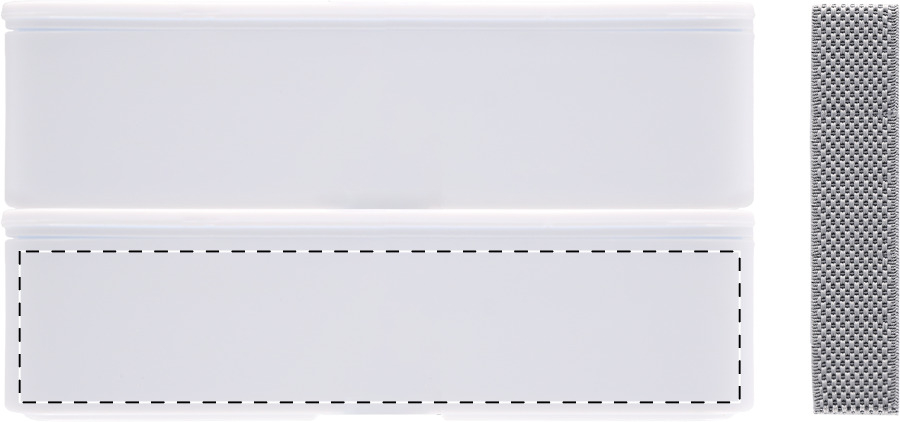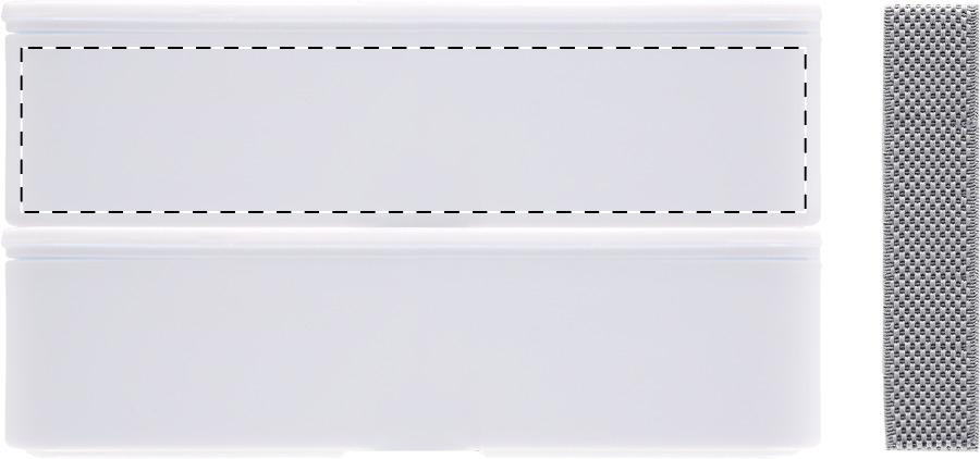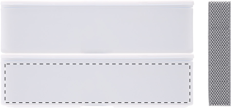 Lunchbox aus antibakteriellem Kunststoff mit Besteckset (Gabel, Löffel und Messer) und elastischem Band. Mit 2 Fächern mit je 700 ml Fassungsvermögen. ISO 22196-konform.