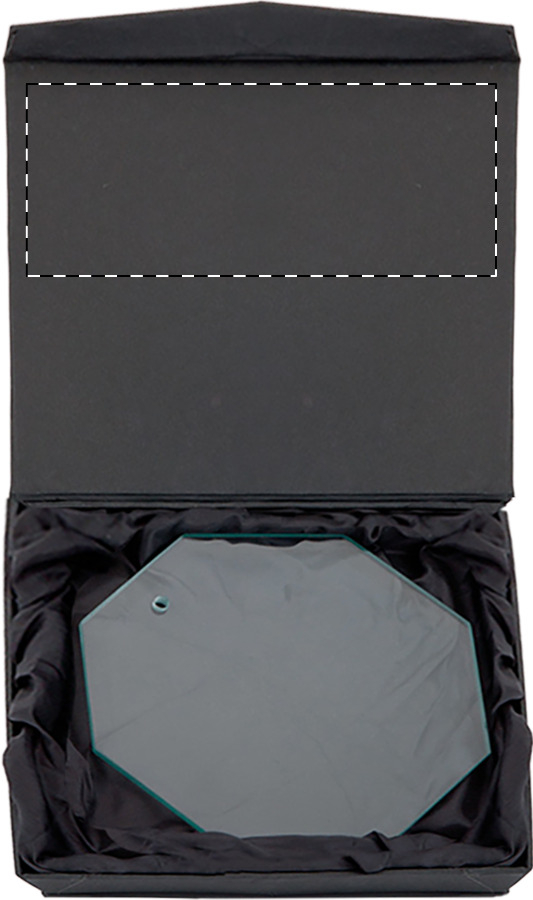Achteckige Trophäe mit Halter. Einzeln in schwarzer Geschenkbox.